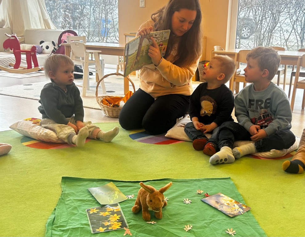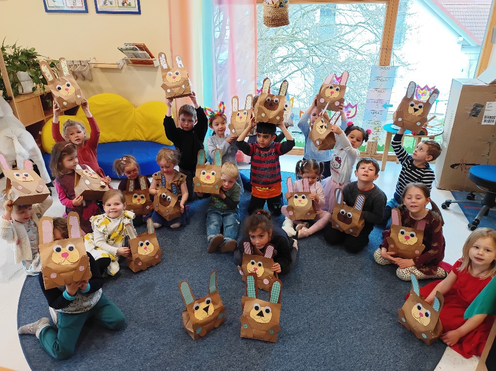 Die Wochen rund um Ostern waren von viel Freude, Neugier und schönen Aktivitäten geprägt. In der Krippe starteten wir gemeinsam mit Hansi Hase in den Morgenkreis.